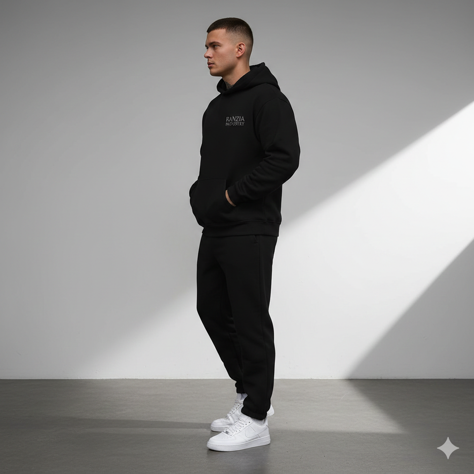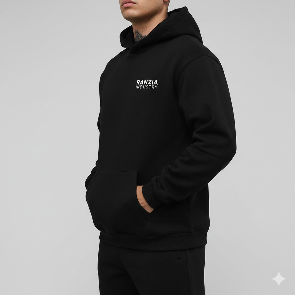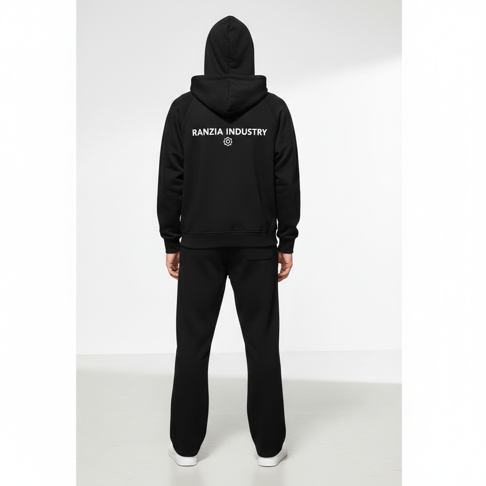 Conjunto de Sudadera con Capucha y Cremallera Ranzia Icon Plus Size con Bordado de Pedrería - Sudadera con Capucha y Cremallera Completa Ranzia Heavy Drip con Pedrería