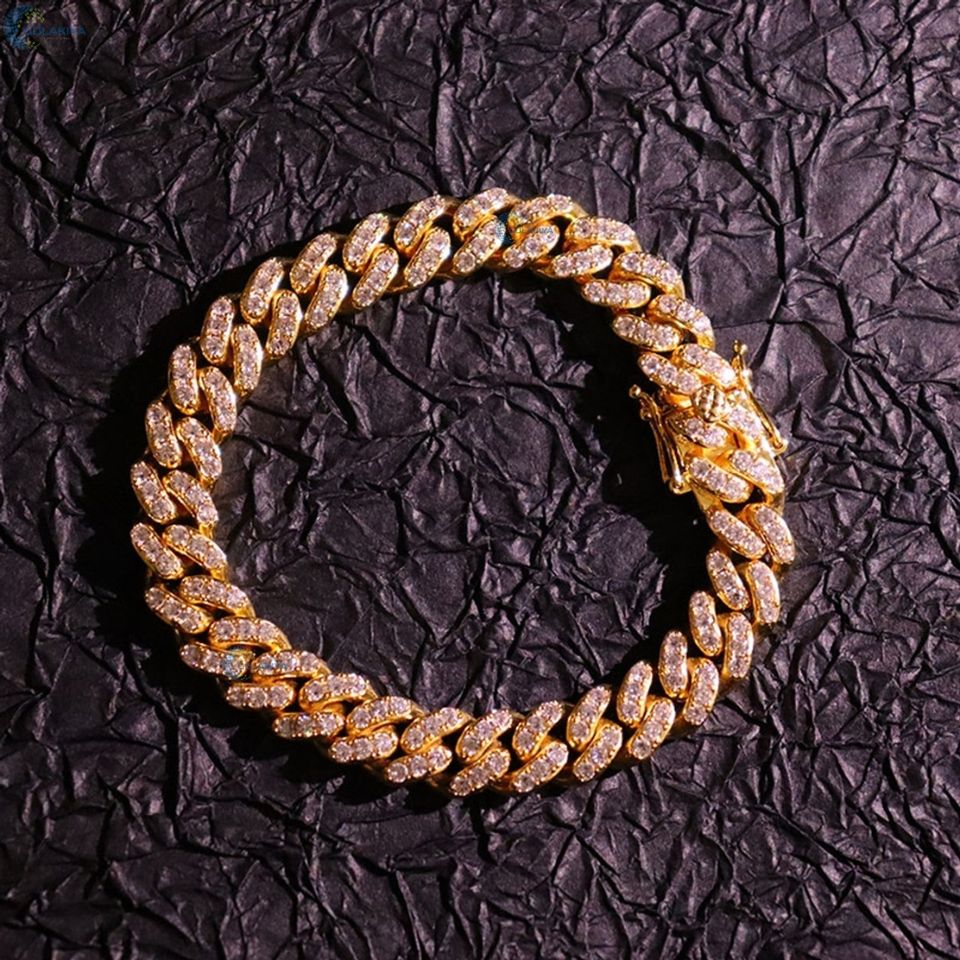 Pulsera de Diamantes Cultivados en Laboratorio Estilo Rapper, Pulsera de Lujo con Incrustaciones de Diamantes, Pulsera Hip Hop Personalizada con Eslabones Cubanos