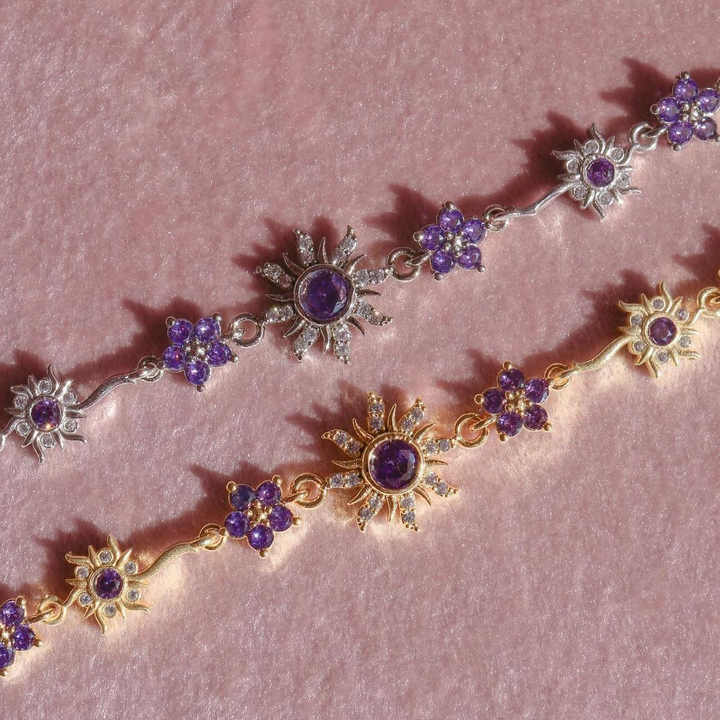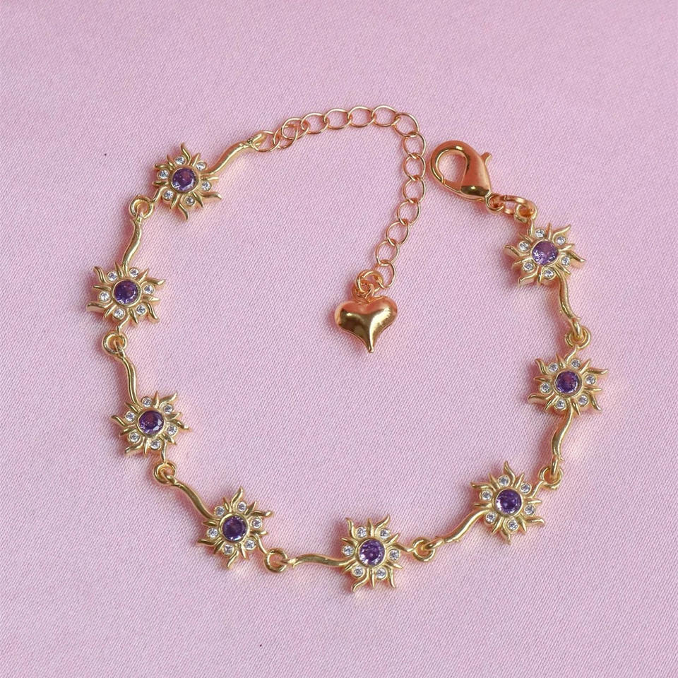 Pulsera de eslabones 'Corona de flores Rapunzel', brazalete de latón, lindo y dulce