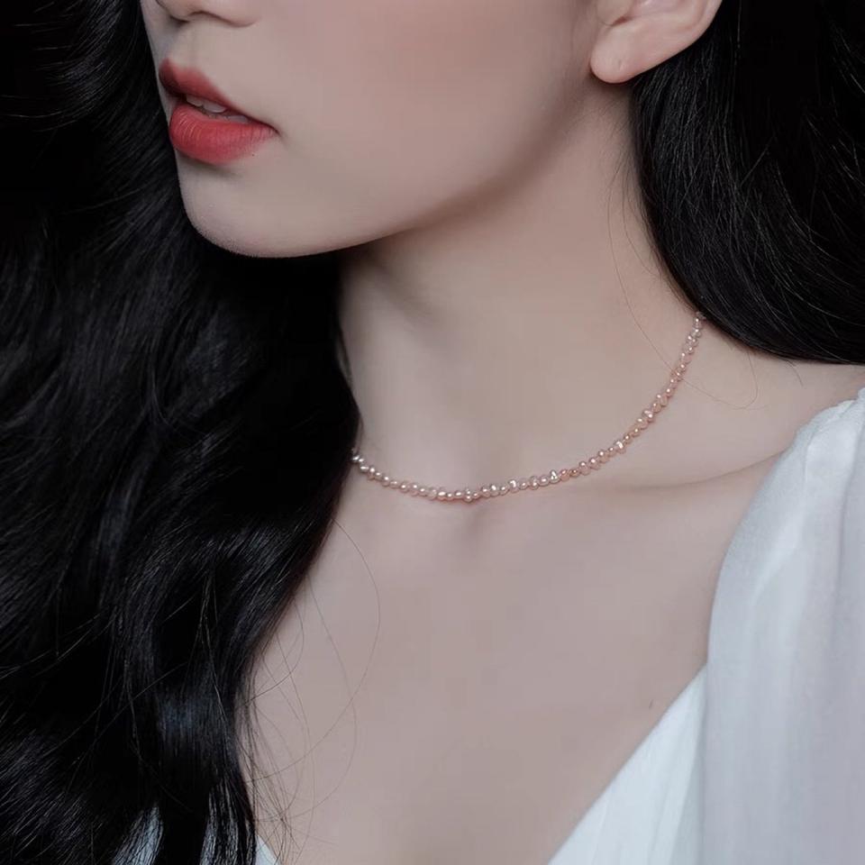 Collar de Perlas Pequeñas Barrocas de Plata Rota Rosa Púrpura de 3-4 mm, Raras, para Mujer, Naturales, con Luz Intensa, Belleza Extrema