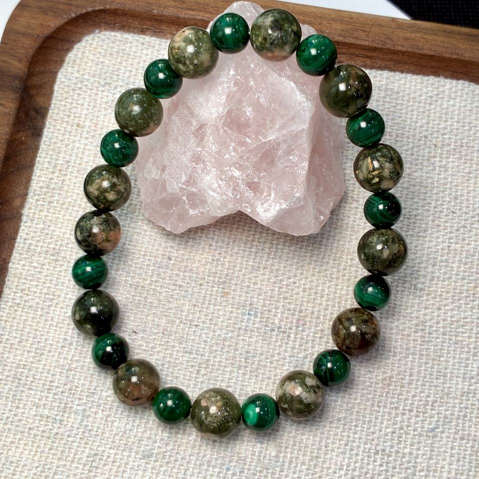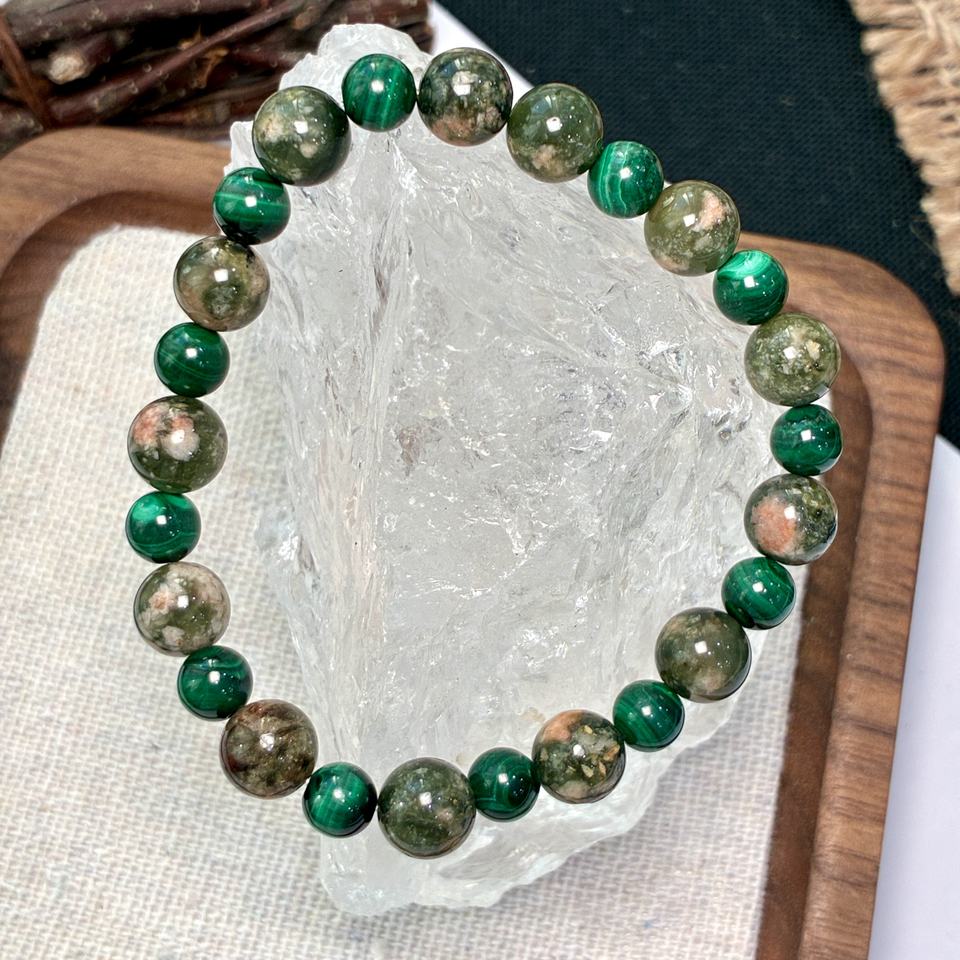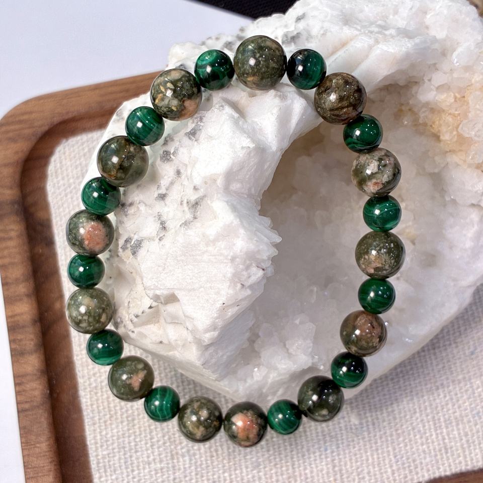 Pulsera de Cuarzo Rutilado Verde de 8mm, con Cuentas de Malaquita de 6mm, Cristal Curativo para la Vitalidad, Estilo Swarovski