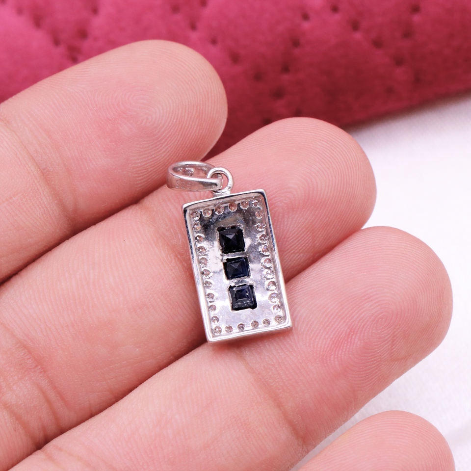 Nombre del elemento:Colgante azul natural de la piedra preciosa del zafiro y del diamante del halo