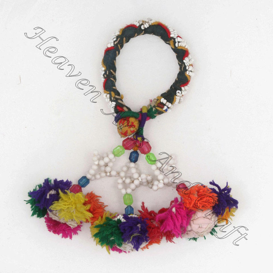 Brazalete de borla de Banjara con cuentas de perlas multicolores de algodón raro, pulsera/Pulseras, Pulseras gitanas antiguas, BANJARA auténtica