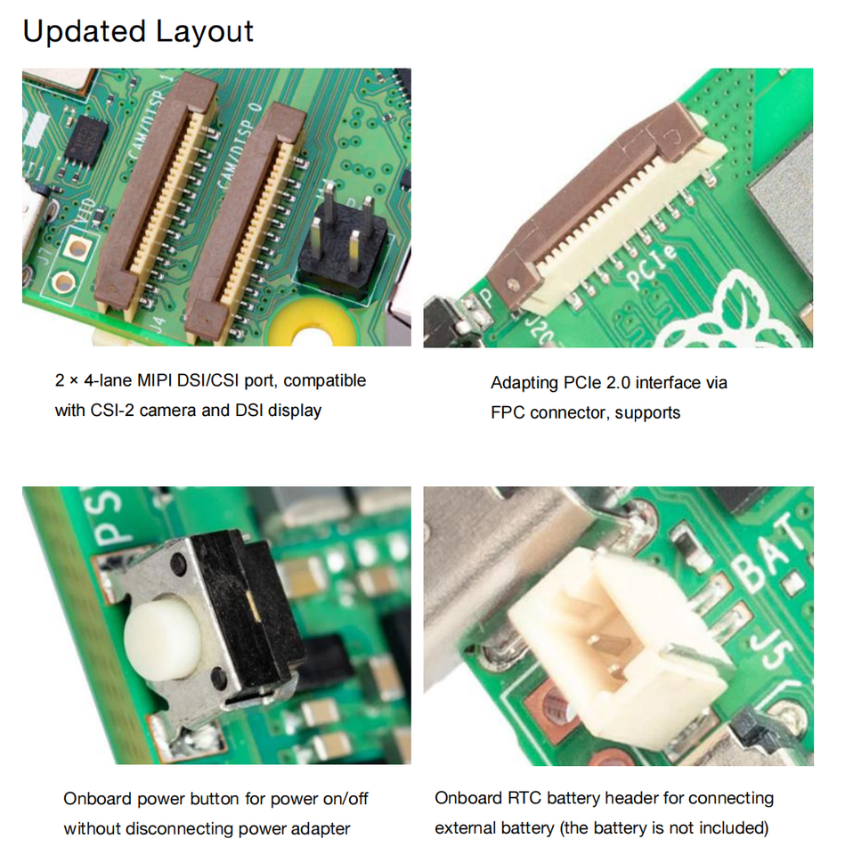 procesador:Broadcom BCM2712, SoC de cuatro núcleos, Cortex-A76 (ARM v8) de 64 bits, 2.4GHz