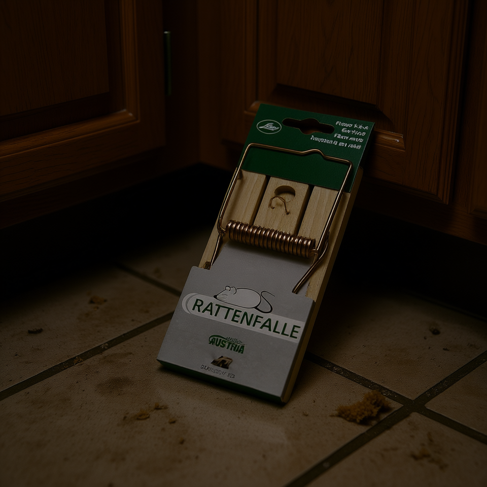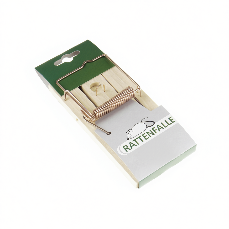 Trampa para ratas con mecanismo de resorte de madera para control de plagas, fabricada en Austria
