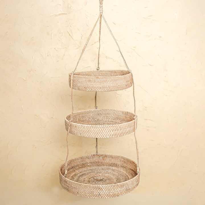 Cesta de Frutas de Ratán de 3 Niveles, Tejida a Mano, Cestas Colgantes Triples, Artículos Esenciales de Cocina al por Mayor