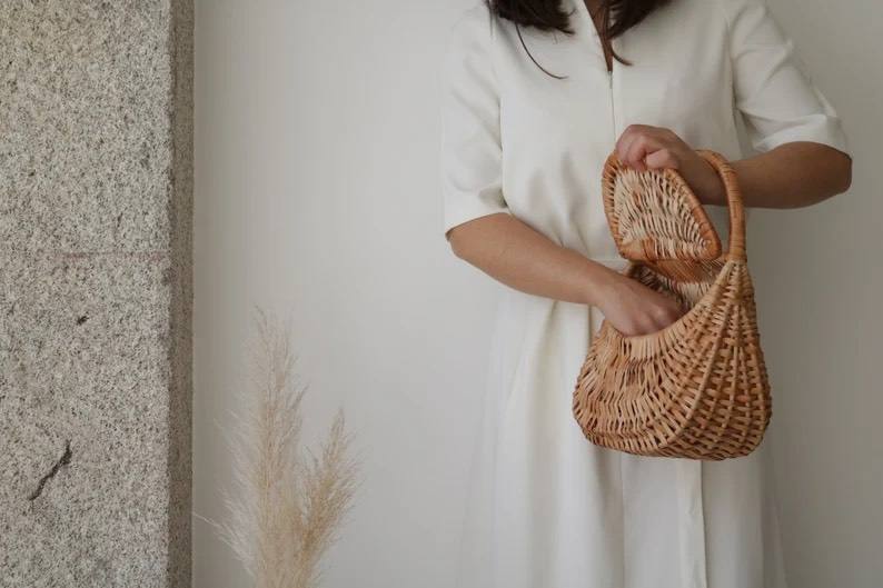 Bolso de hombro hecho a mano para mujer, funda de mimbre