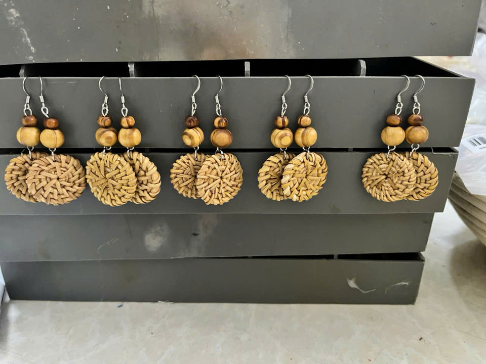 Pendiente de ratán bohemio para damas Accesorio de verano hecho a mano para ropa de playa y regalos de moda Listo para la venta