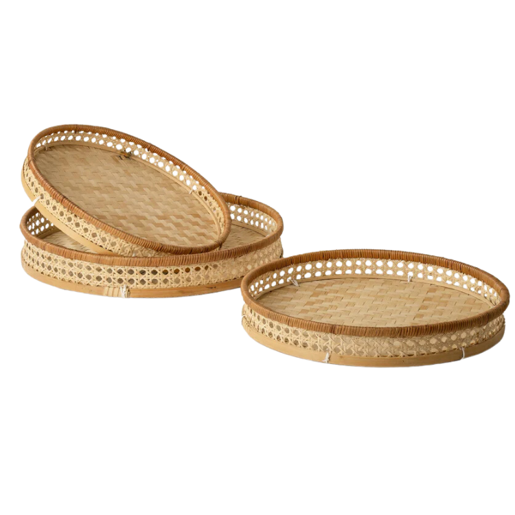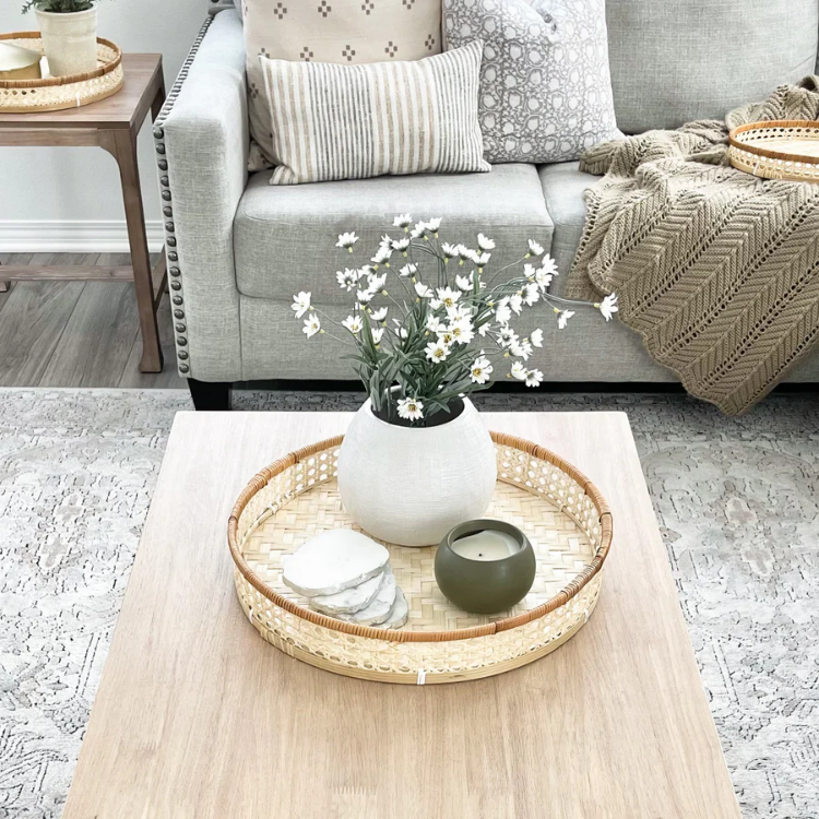 Bandeja de Servicio Multifuncional de Ratán Tejida a Mano, Diseño Moderno y Minimalista, Tolerancia de Precisión, para Servir Comida en la Cocina y Sala de Estar