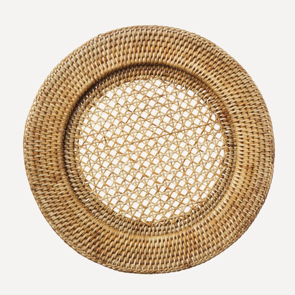 Cargador de placa de ratán Cargador de ratán redondo Placas Manteles individuales Material natural redondo Vajilla Proveedor al por mayor