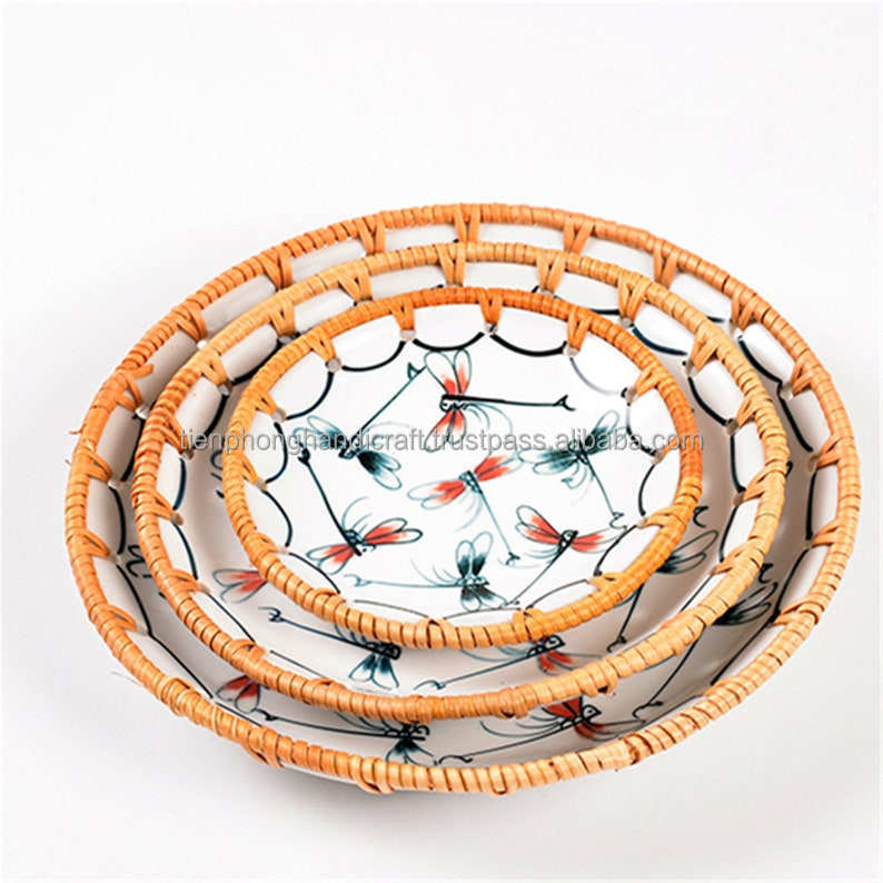 Nombre del producto:De ratán de mezcla de platos de cerámica
