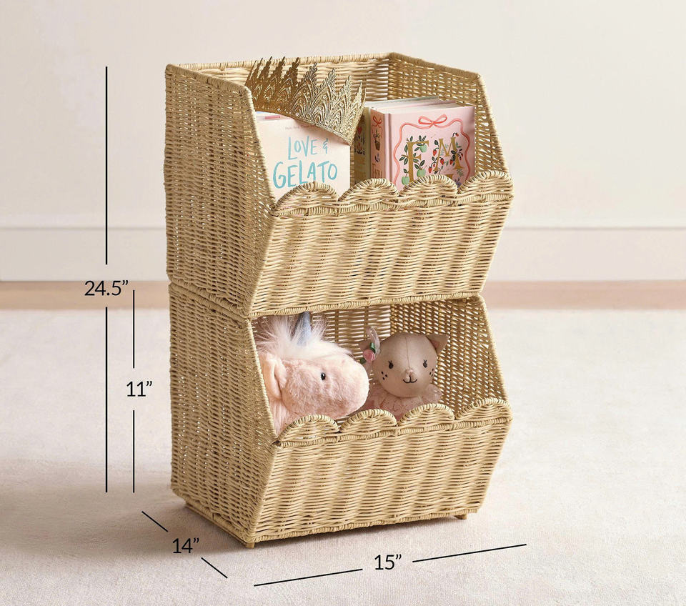 Cesta de Almacenamiento Apilable de Mimbre, Organizador de Mimbre para Libros, Juguetes, Guardería, Armario, Solución de Almacenamiento para el Hogar, Habitación Infantil