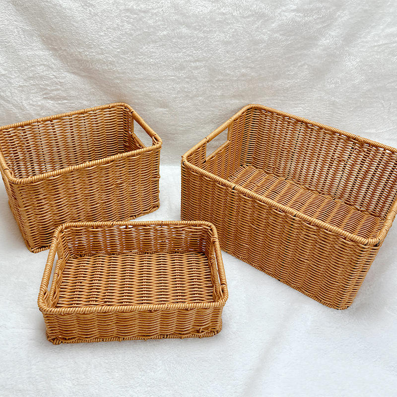 Cesta de almacenamiento de ratán rectangular con asas de 26x17x15,5 cm para organizar escritorio, aperitivos y libros