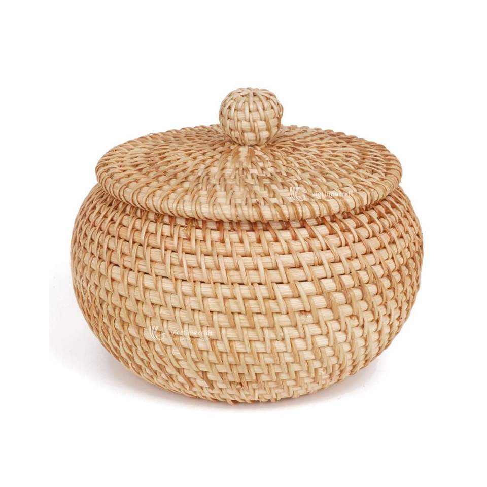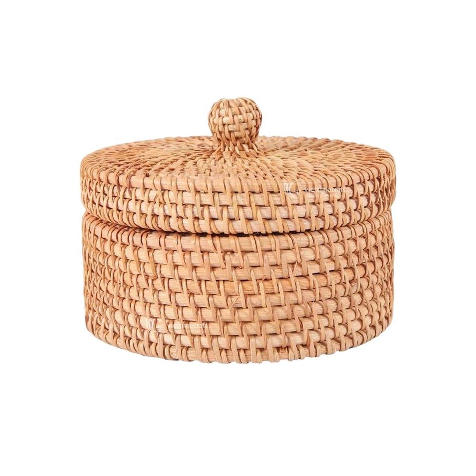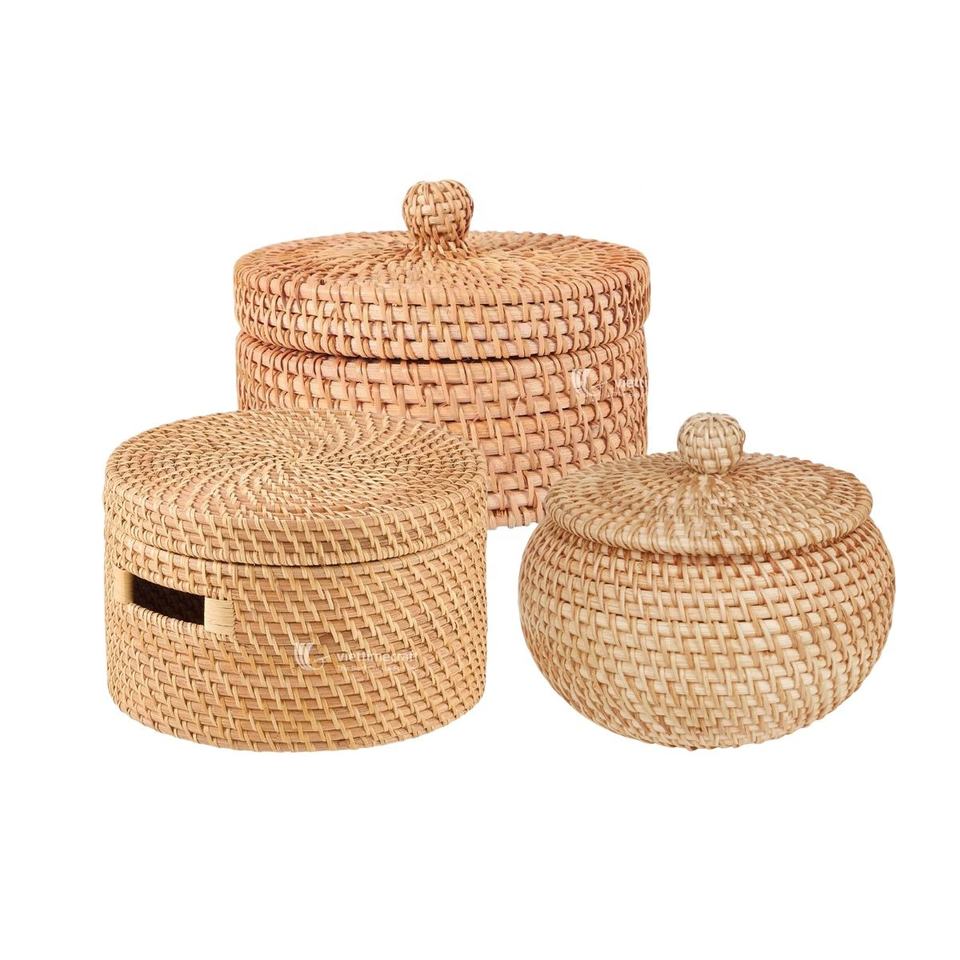Caja de Almacenamiento de Ratán con Tapa, Organizador de Cocina, Cesta de Almacenamiento Tejida a Mano para Alimentos, Accesorios y Decoración del Hogar, Venta al Por Mayor