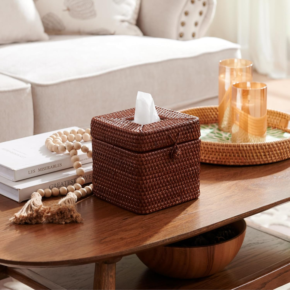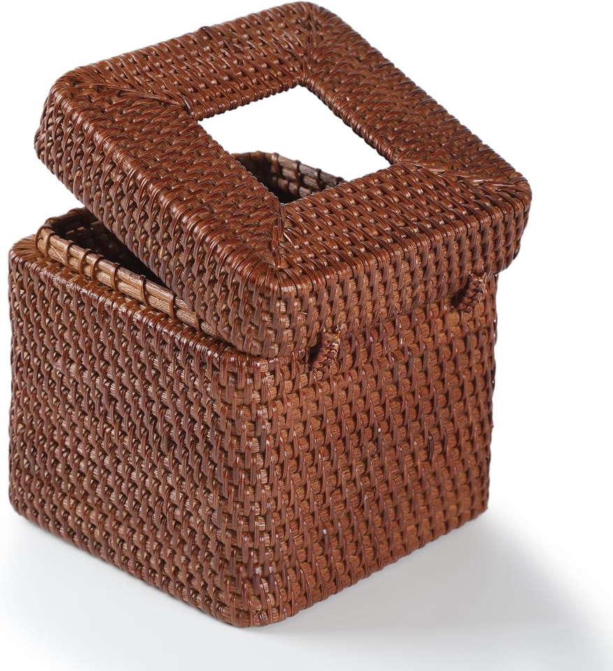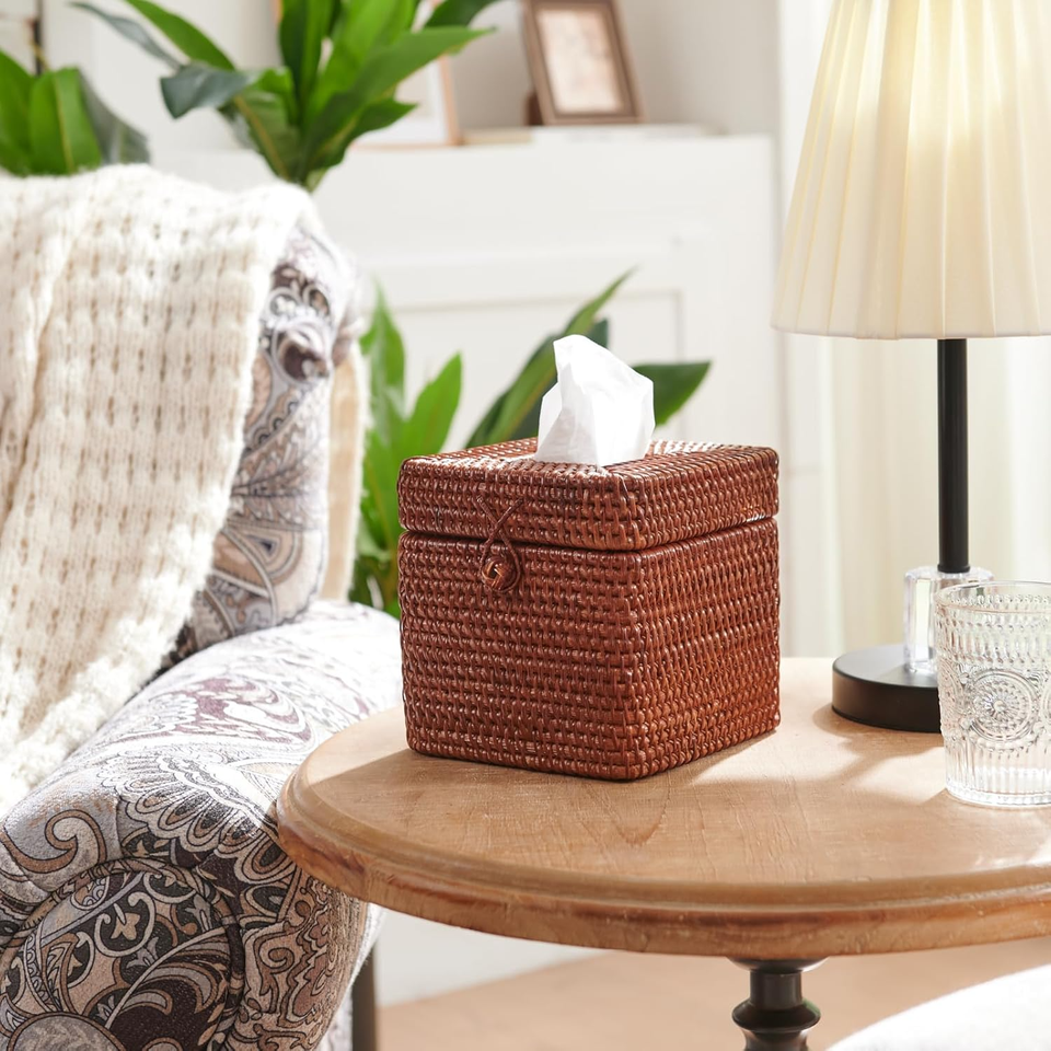 Caja de pañuelos de almacenamiento cuadrada de ratán hecha de materiales naturales, tamaño personalizable bajo petición, caja de pañuelos multifuncional.