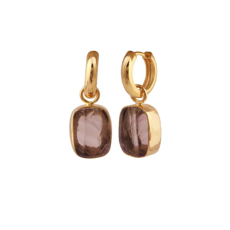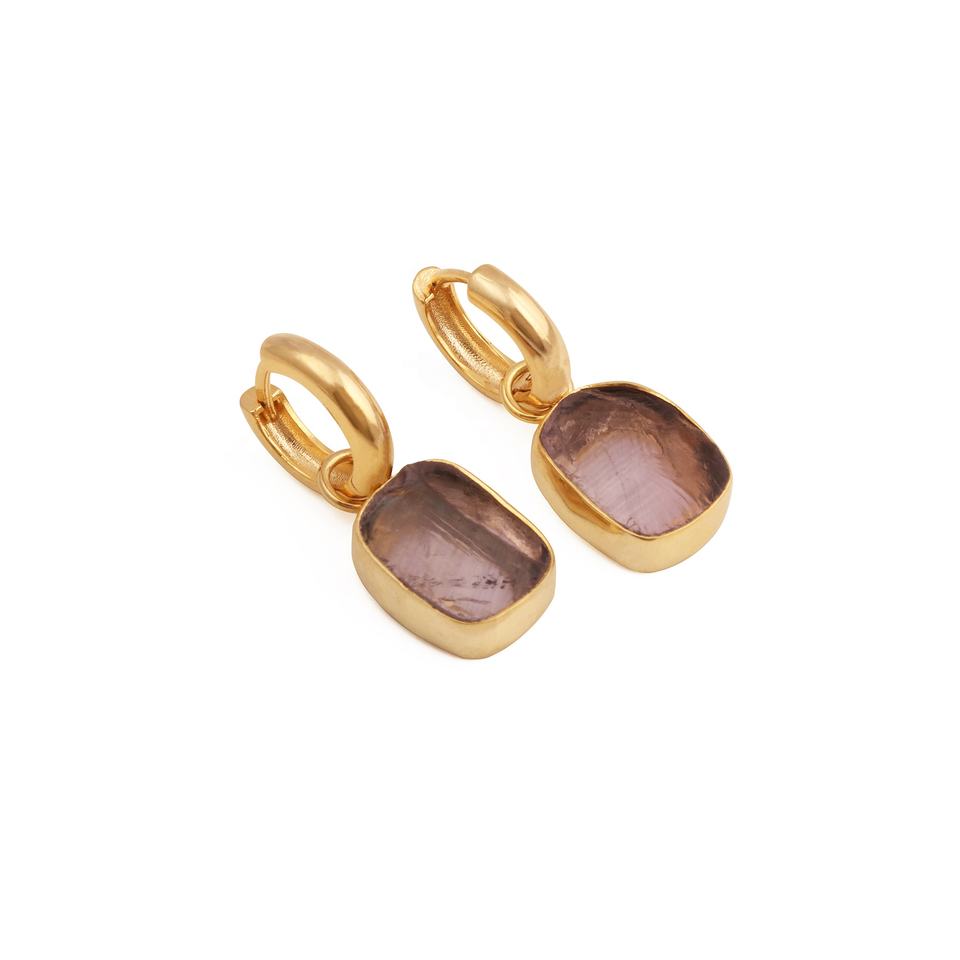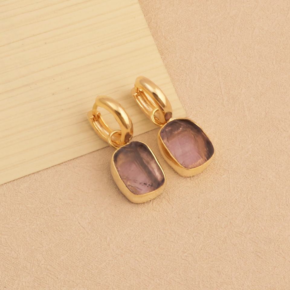 Pendientes de Aro de Amatista en Bruto, Hechos a Mano, Chapados en Oro sobre Latón, con Piedras Preciosas, Regalo para Mujer