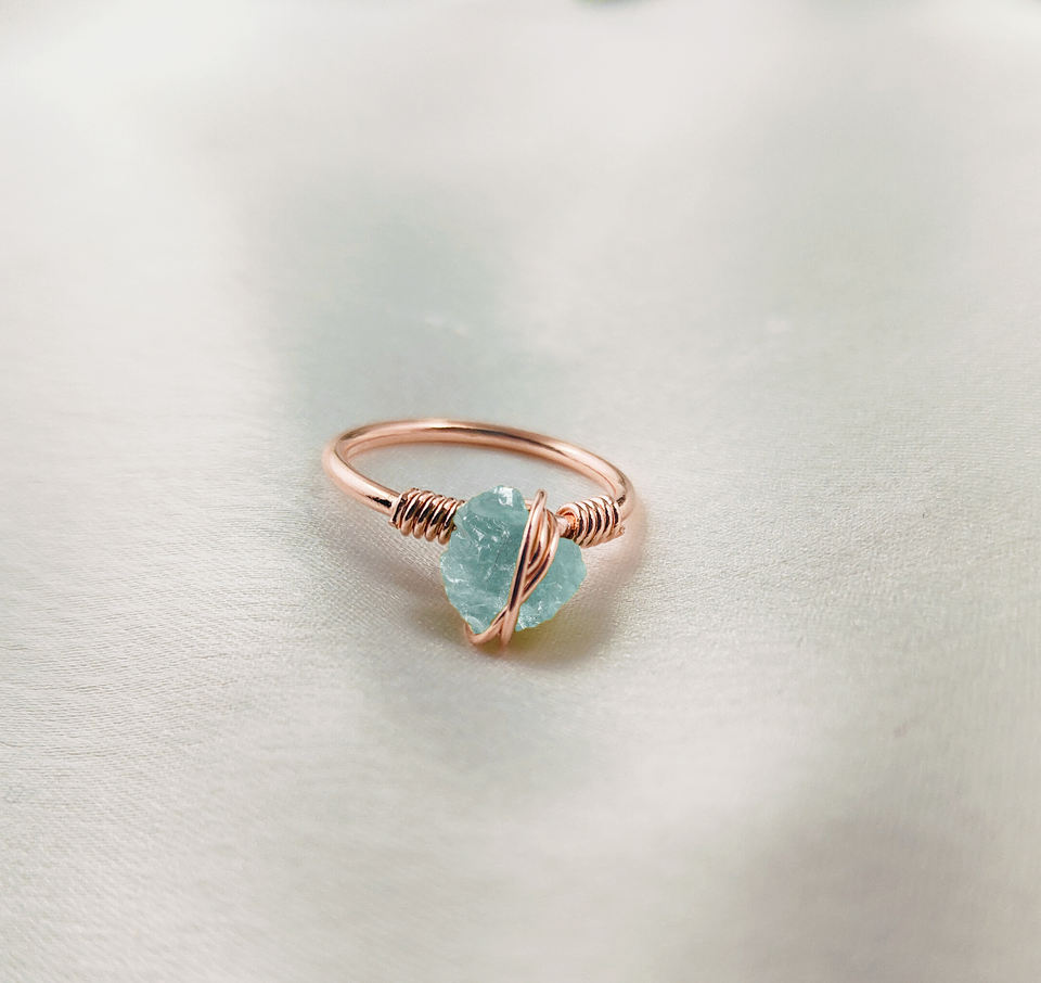 Anillo de piedras preciosas de amatista cruda de 8-10mm, anillo envuelto en alambre de piedra natal de Plata de Ley 925 chapado en oro rosa y rodio