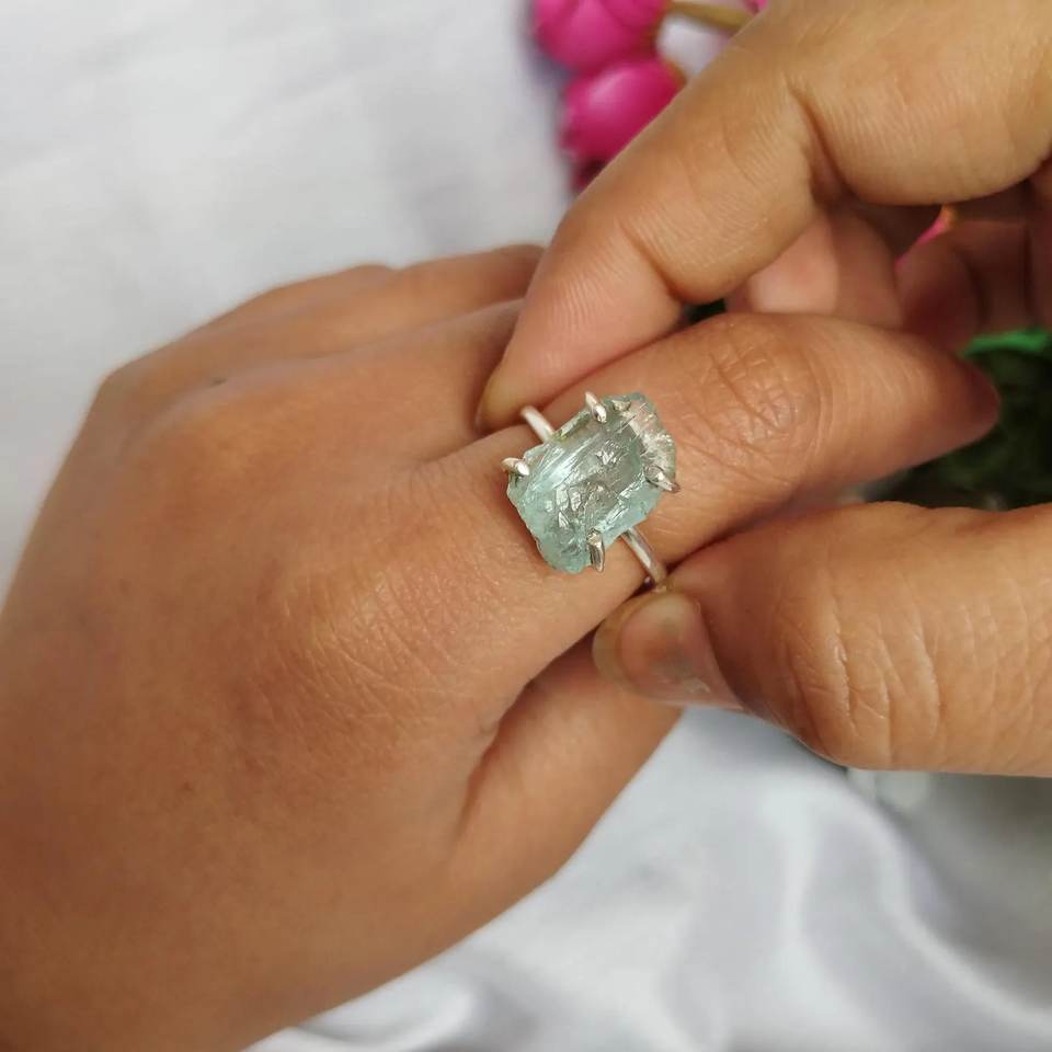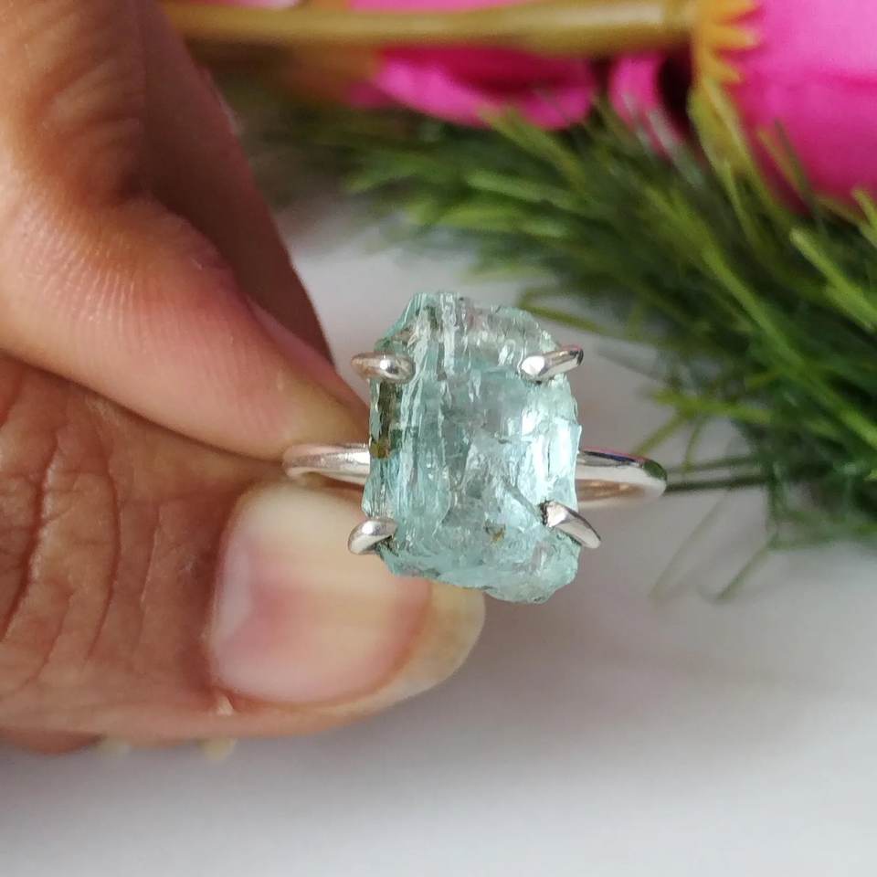 Anillo de piedra NATAL DE MARZO DE aguamarina cruda joyería de plata 925 hecha a mano | Anillo en bruto de cristal de Aguamarina natural al por mayor