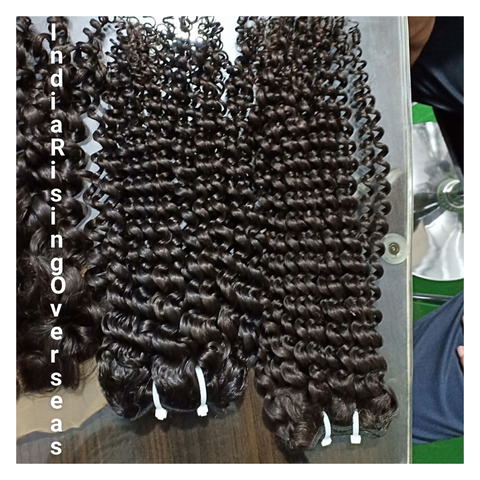 Extensiones de Cabello Humano Natural Sin Procesar, Ondulado Profundo, Cabello Remy Indio, Mechones Dobles Cosidos a Máquina, Brillo Natural, Cabello de Templo, Suave