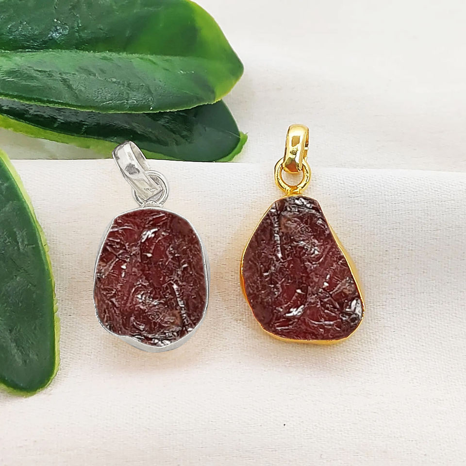 Colgante de Granate en Bruto con Engaste Tipo Collet, Hecho a Mano, Piedra de Nacimiento, Chapado en Oro, Amuleto de Cristal Curativo, Joyería de Cristal en Bruto, 10-12mm
