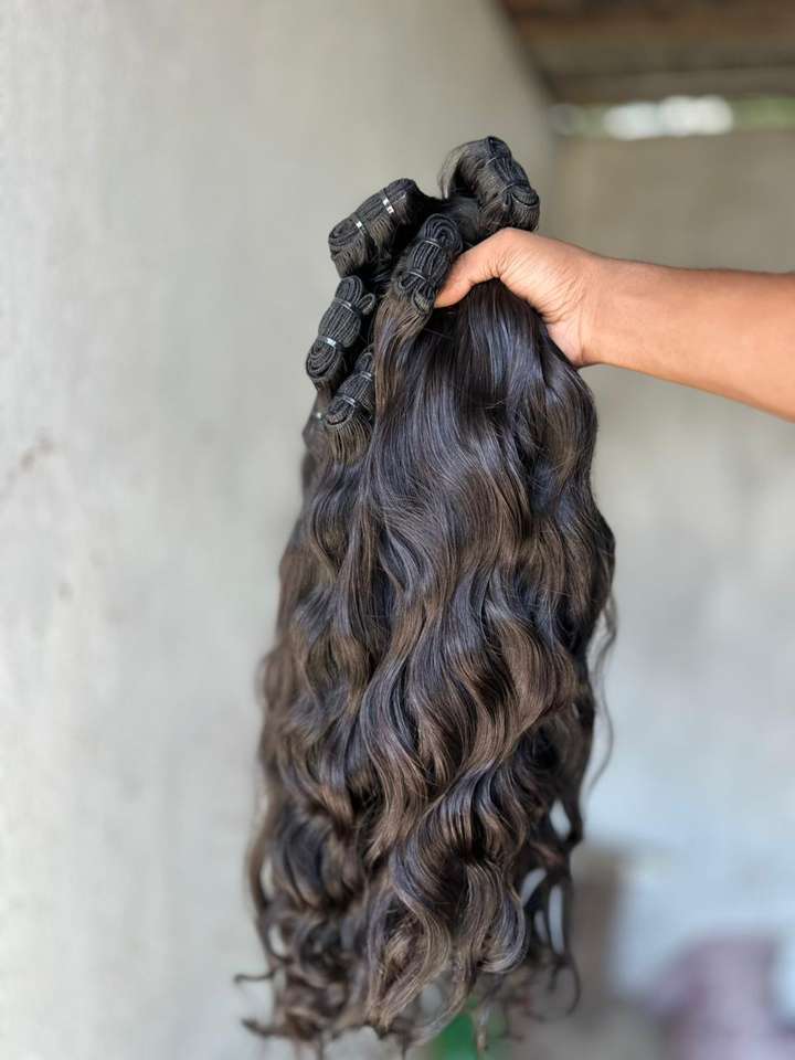 Extensiones de Cabello Humano Remy Natural Ondulado Indio Virgen de 24 Pulgadas, Trama Doble a Máquina, Color Negro Natural, Puntas de Una Sola Capa, Alta Calidad