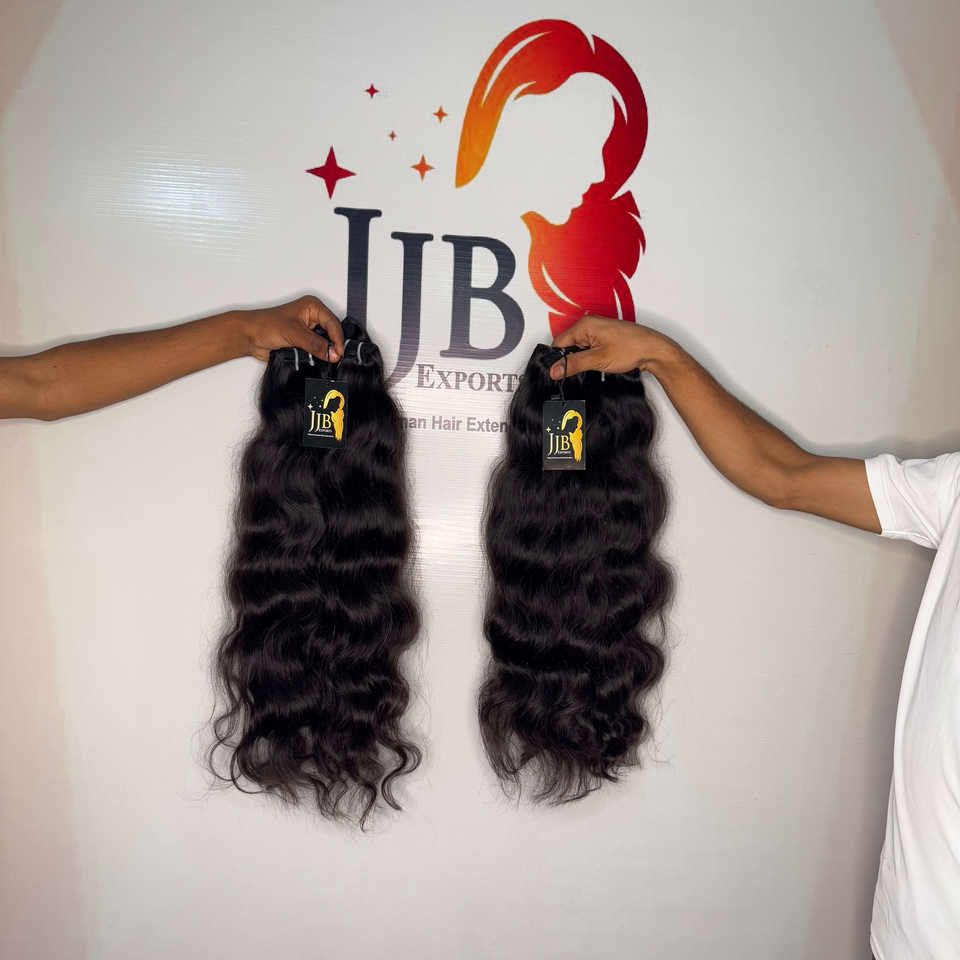 Extensión de cabello humano de templo indio crudo, vendedores de cabello humano ondulado Virgen sin procesar natural al por mayor