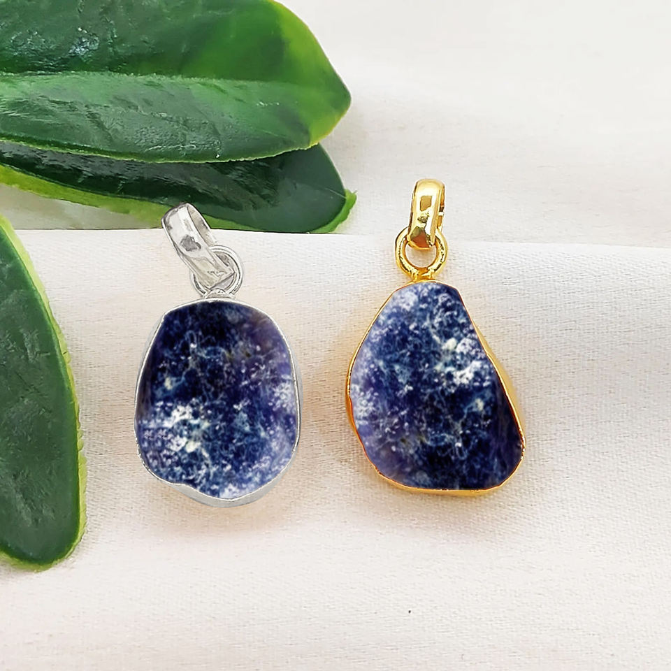 Colgante de Iolita en Bruto con Engaste, Hecho a Mano, Piedra de Nacimiento, Chapado en Oro, Amuleto de Cristal Curativo, 10-12mm