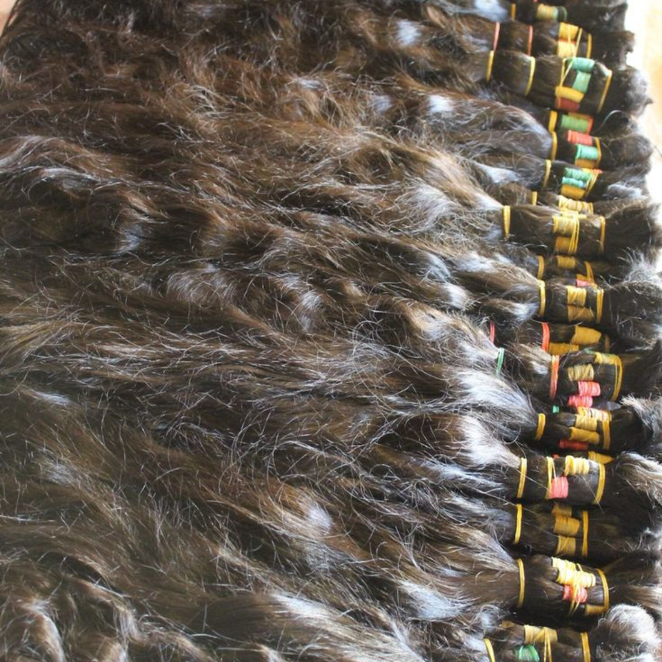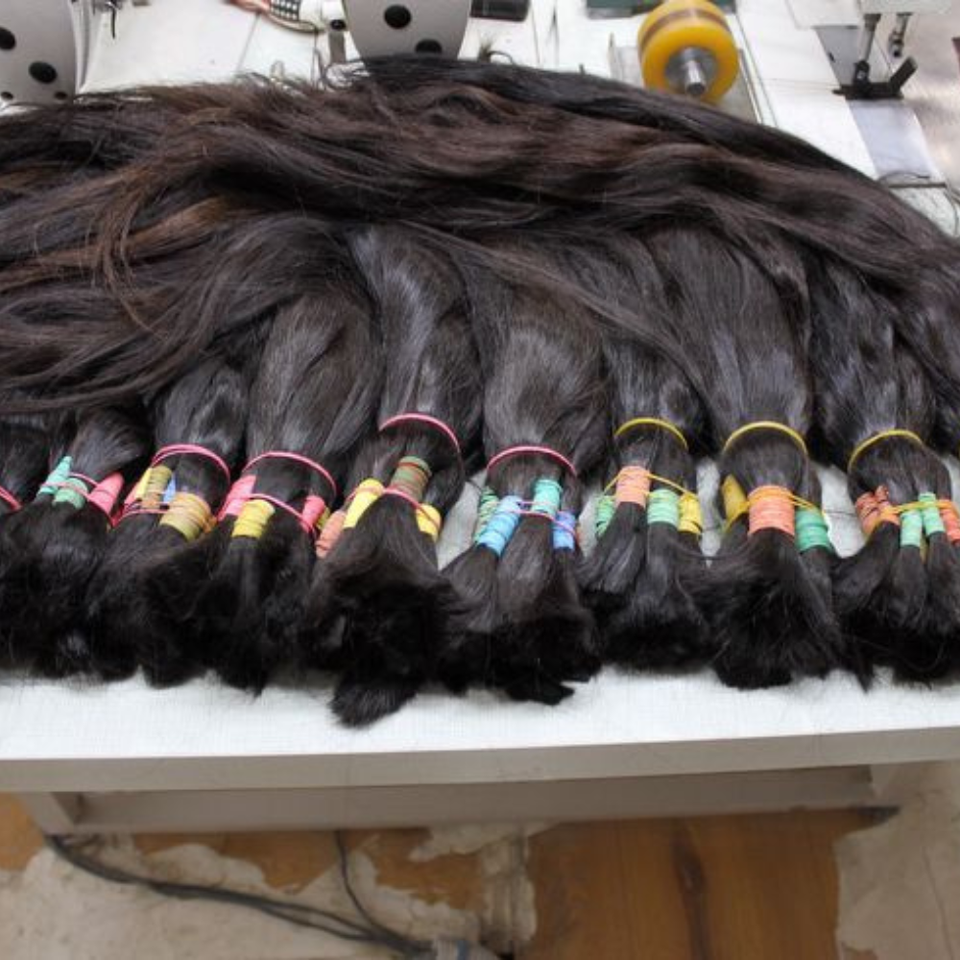 Cabello Humano Remy Crudo Sin Procesar Virgen Natural a Granel Extensiones de Templo del Sur de la India Trama Doble a Máquina Permanente Permitida