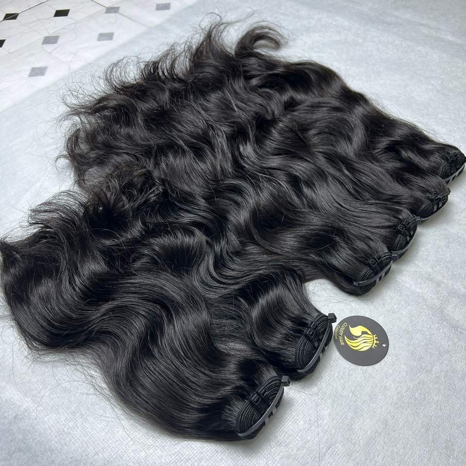 Cabello humano vietnamita crudo Sin procesar Paquetes ondulados naturales crudos Extensiones de cabello Cabello humano crudo alineado con cutícula