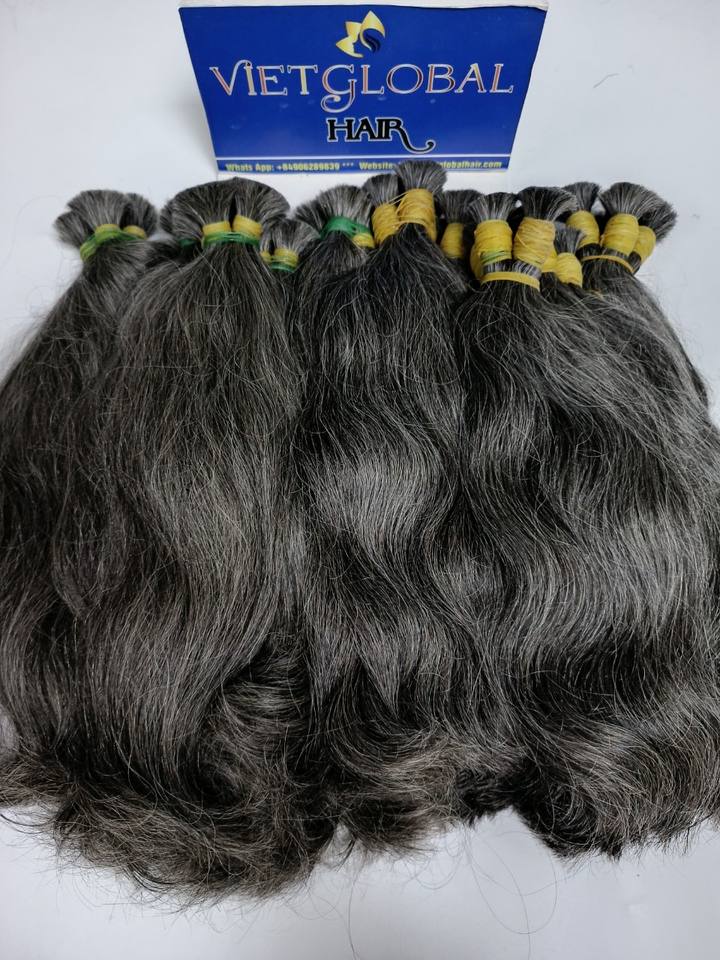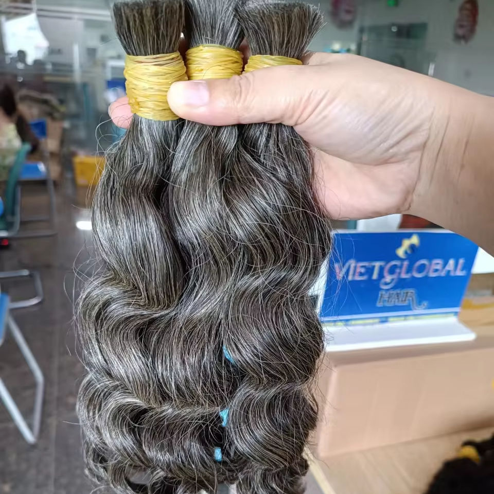 Extensiones de Cabello Humano Virgen Remy Natural Gris Vietnamita a Granel, 60cm de Largo, Estilo Yaki, Alta Calidad
