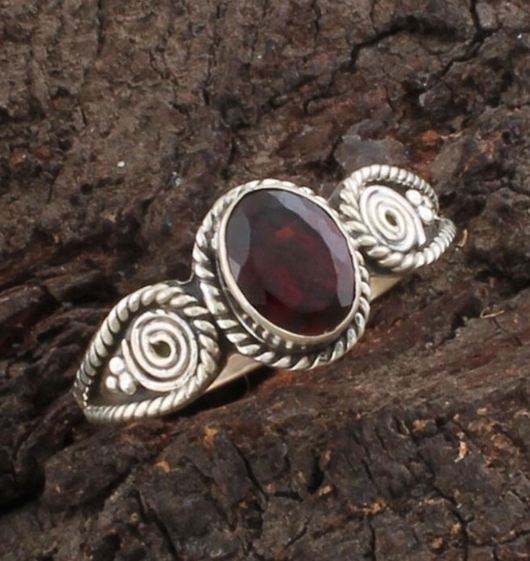 Anillos de Compromiso, Aniversario y Boda de Plata de Ley 925 con Engaste de Granate Rojo Cristiano en Bruto, de Lujo para Mujer, al por Mayor