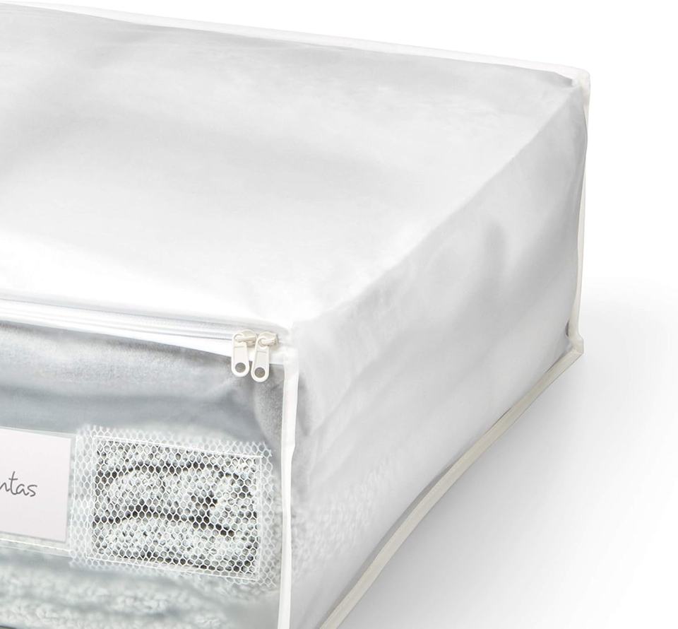 Rayen | Caja de Almacenamiento para Ropa y Mantas | Bolsa de Almacenamiento con Cierre de PVA | Malla Transpirable, Plegable y Resistente | 55x65x20cm | Translúcido | Hecho