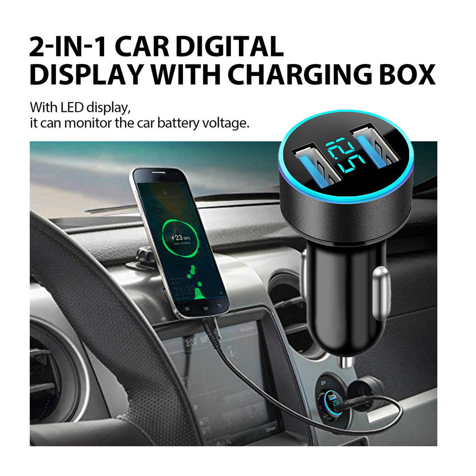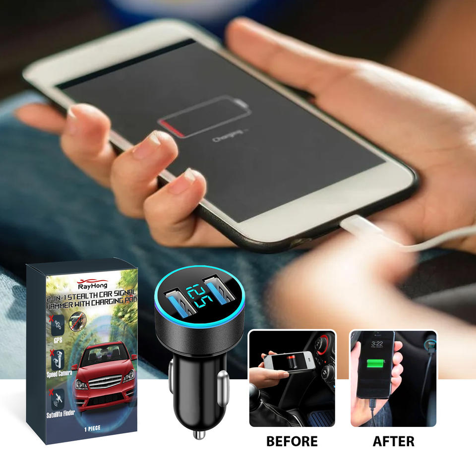 Cargador de Coche Portátil con Pantalla LED Rayhong para iPhone, Samsung, Xiaomi, Huawei, Teléfono Móvil, Carga Rápida, Accesorios para Teléfono