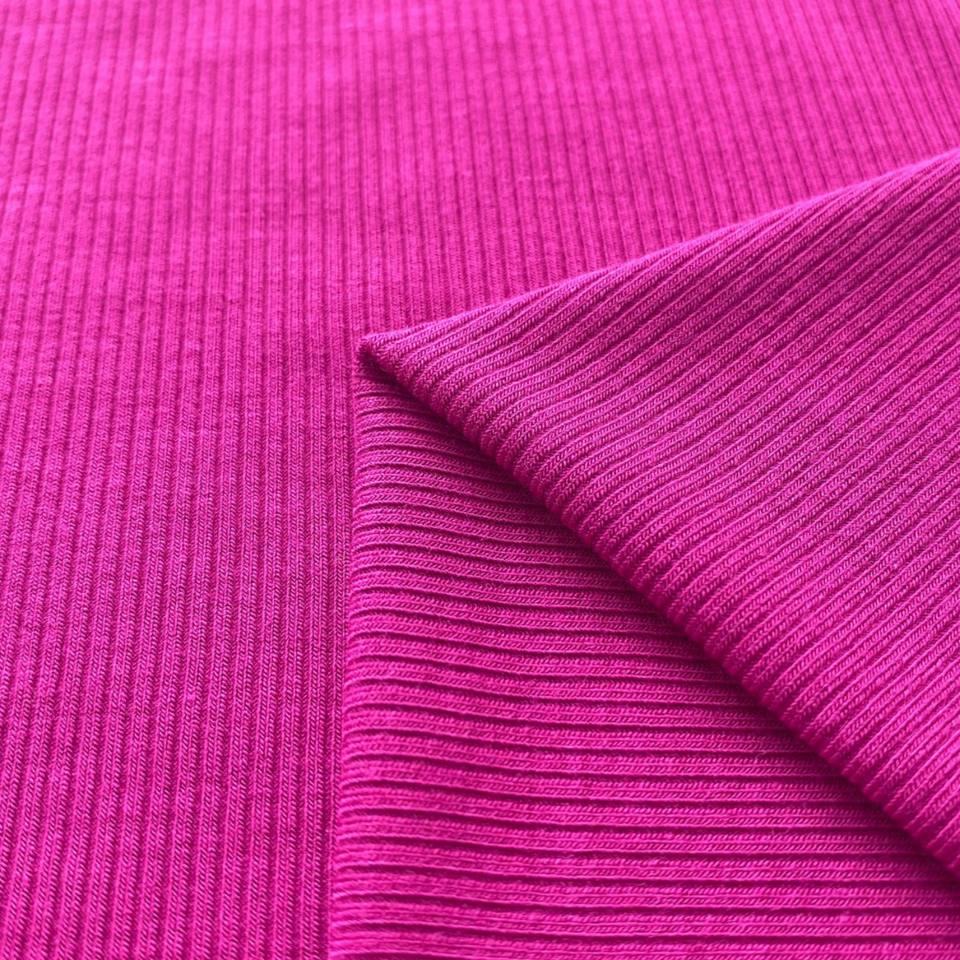 Tela de rayón acanalada con spandex, jersey de punto acanalado, cuello y puños, material transpirable de un lado para la confección de prendas.