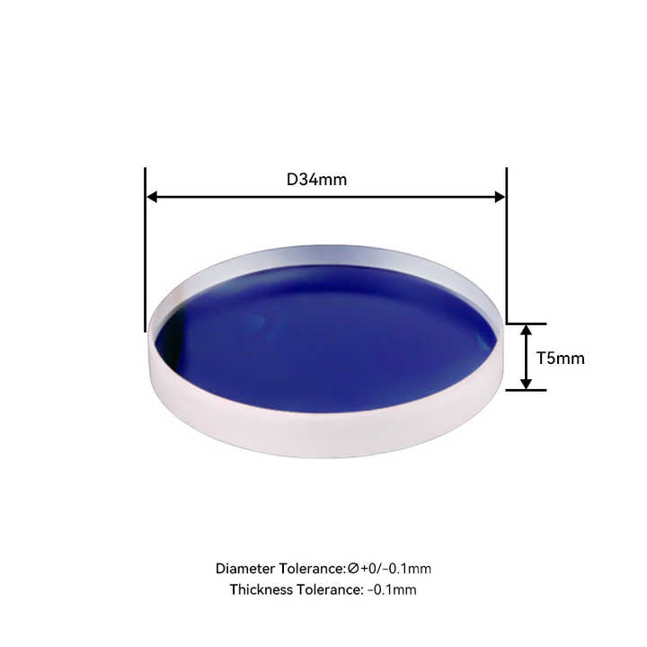 Lente de fibra óptica Raysoar, lente protectora óptica láser D34 T5.0mm, sílice fundida para máquina de corte por láser de fibra Industrial Trumpf