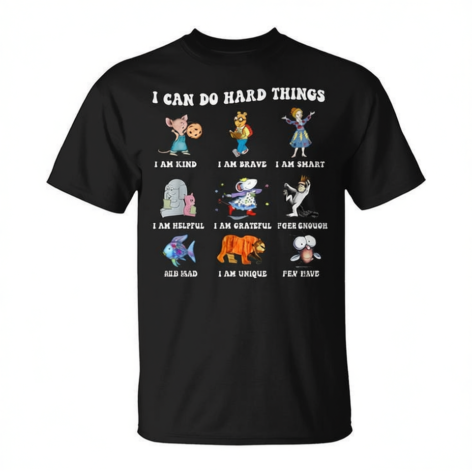 Camiseta con estampado de personajes de libros I Can Do Hard Things, ropa para niños de regreso a la escuela