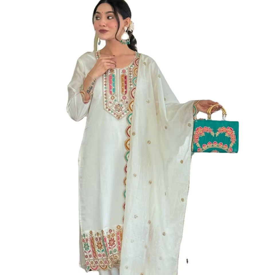 Conjunto de Kurti y Pantalón Dupatta de Fiesta, Diseño de Primera Clase, la Mejor Calidad, Piel Sintética, Manga 3/4, Estampado, Largo hasta la Rodilla