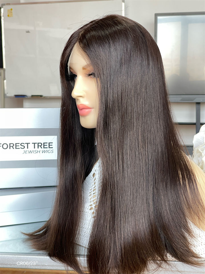 Envío listo 23 pulgadas #4 Peluca de pelo virgen eslavo ruso 100% capa súper ligera recta Natural transparente para encaje Natural