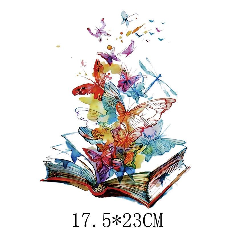 Stock listo para Amazon, pegatinas coloridas para planchar, Impresión de mariposa, diseño de transferencia de calor para accesorios de ropa, Material de PVC
