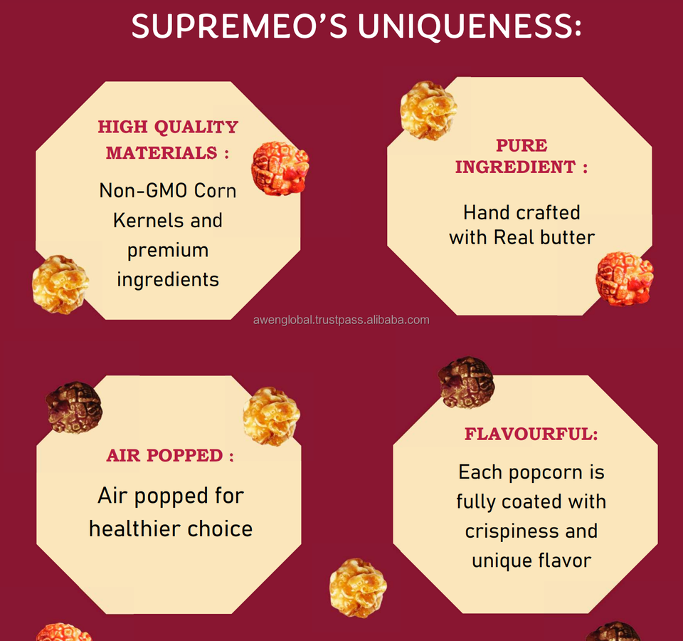 Nombre del producto:Snacks Halal de Calidad Premium con palomitas de maíz en diversos sabores