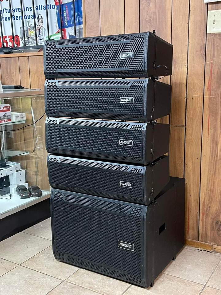 Sistema de Altavoces Line Array Profesional con Doble Subwoofer de 18 Pulgadas, Amplificador de Potencia y Set Completo para Profesionales (2) - Listo para Enviar