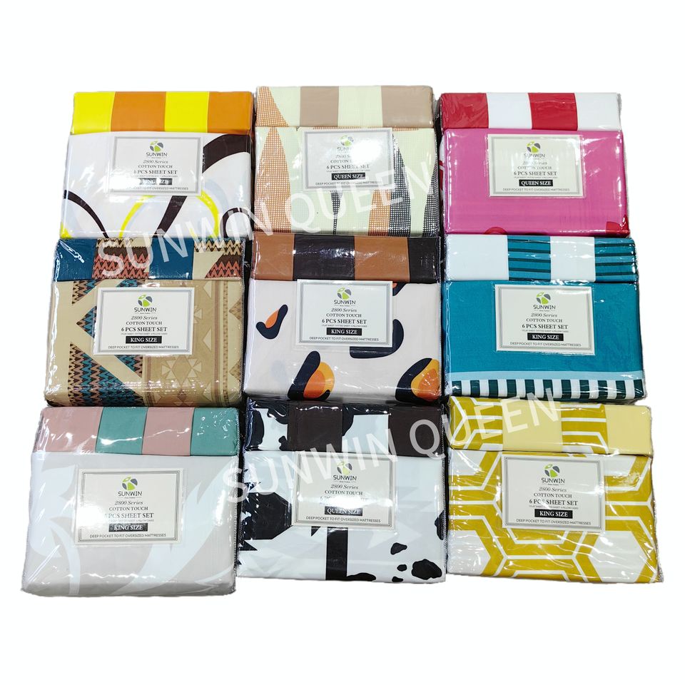Listo para enviar King Size personalizado 6 piezas Juego de sábanas Impreso Juego de sábanas de lujo para el verano Venta al por mayor Juego de cama