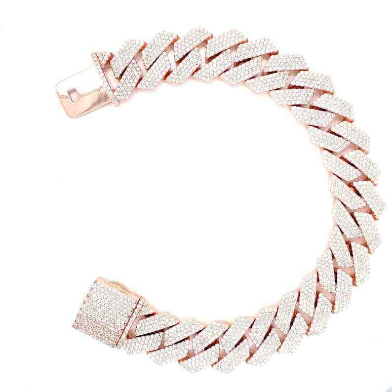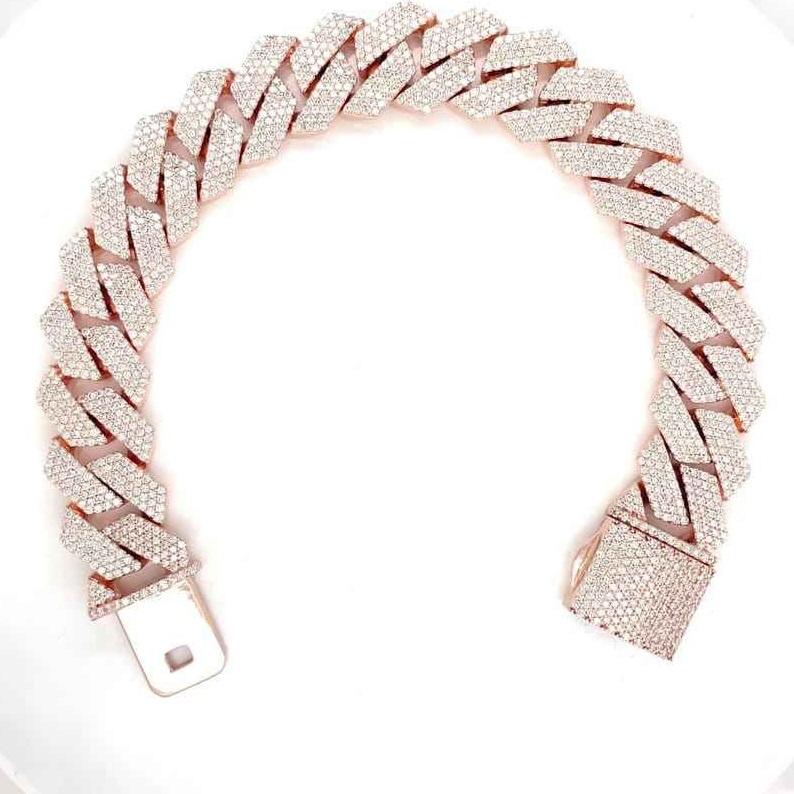 Listo para enviar 10mm 925 oro rosa sólido Hip Hop joyería Iced Out VVS Moissanite diamante pulsera cubana para hombres
