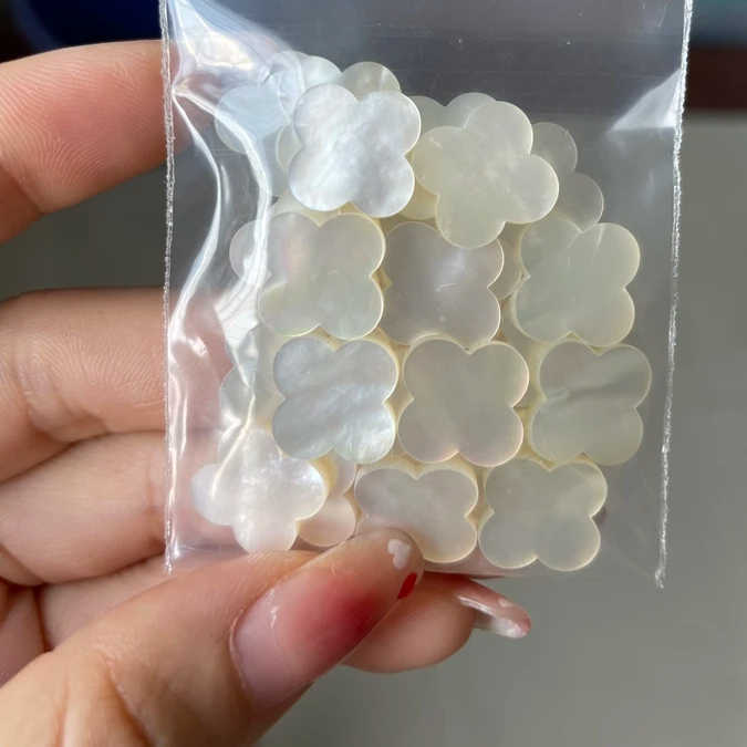 Listo para enviar 8-13mm Cuatro tréboles Piedra preciosa MOP Shell Negro Rojo Ágata Color azul Trébol de cuatro hojas Piedra natural para colgante