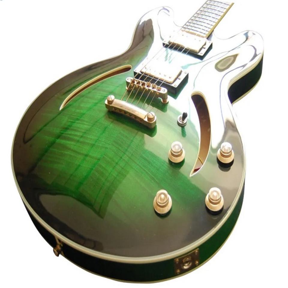 Guitarra Eléctrica de Jazz Lista para Enviar, Cuerpo Semi-Hueco con Arco Tallado en Arce Macizo, Herramienta de Torneado Premium