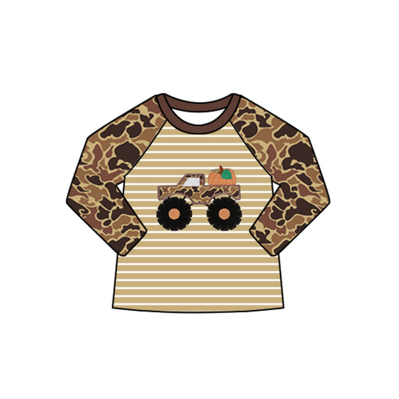Conjunto Casual de Verano para Niños, de Alta Calidad, Listo para Enviar, Camiseta Corta Verde con Bordado de Granja y Pantalones Cortos de Camuflaje, Spandex/Poliéster
