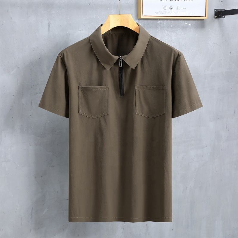 Alta calidad 90% nailon 10% Spandex de talla grande cuarto de cremallera sólido Casual Polo Golf camisa doble bolsillos en el pecho para hombres Impresión de logotipo