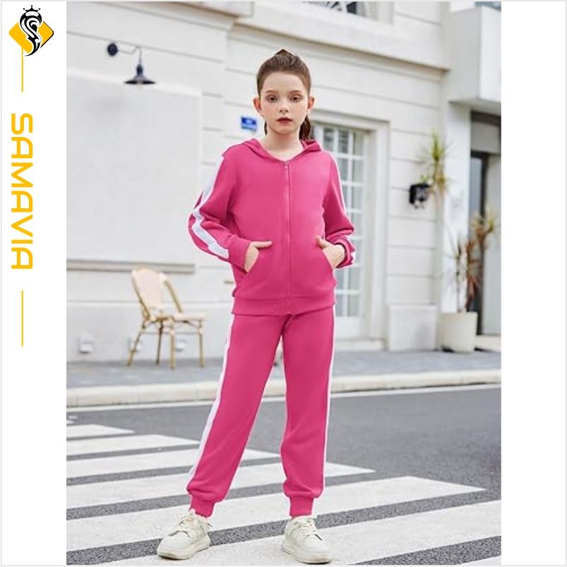 Conjunto de chándal listo para enviar para niños, chaqueta y pantalones de ropa deportiva de 2 piezas para niños y niñas, traje de invierno OEM con logotipo personalizado