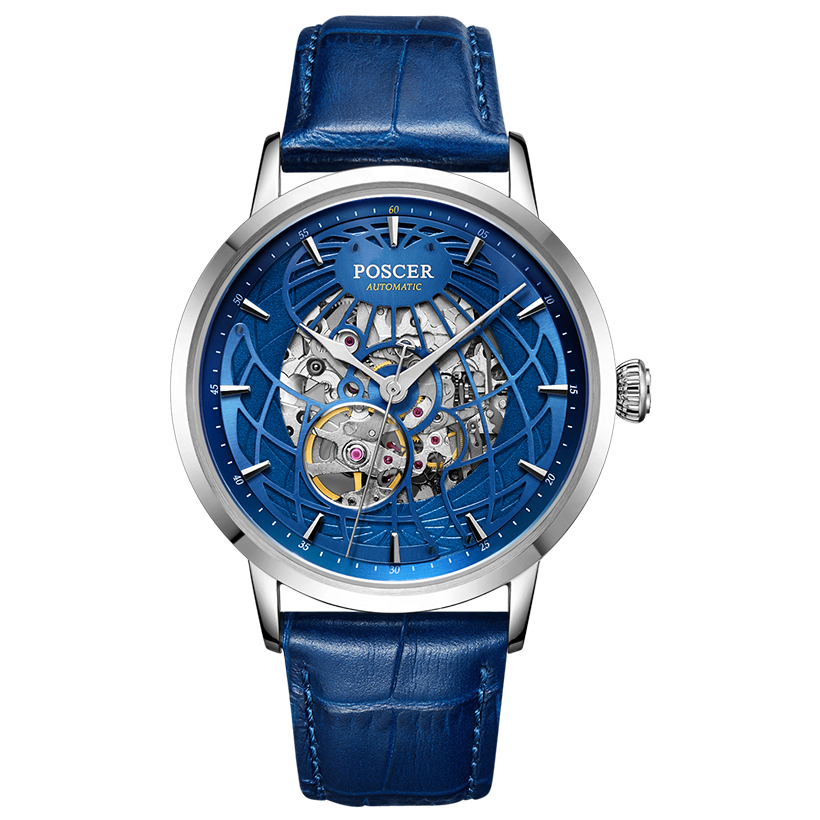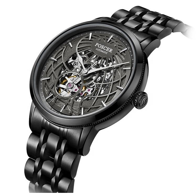 Relojes de lujo con esfera de esqueleto para hombre listos para enviar con correa de cuero genuino automática luminosa movimiento mecánico japonés de 41mm
