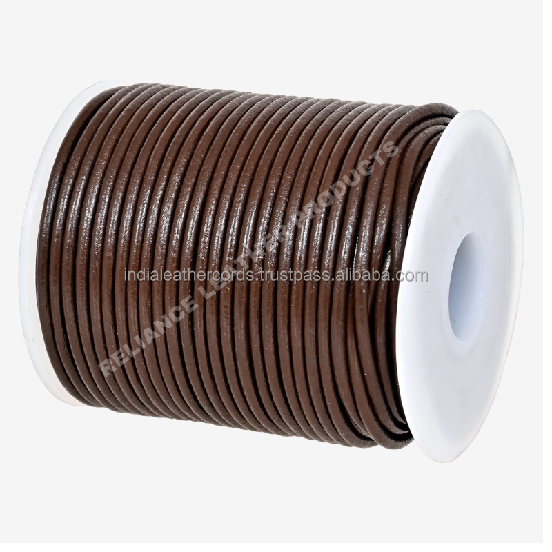 Cordón de Cuero Redondo Marrón Medio de 2 mm, Rollo de 100 Metros para Joyería DIY, Componentes y Fornituras, Precio de Fábrica, Listo para Enviar